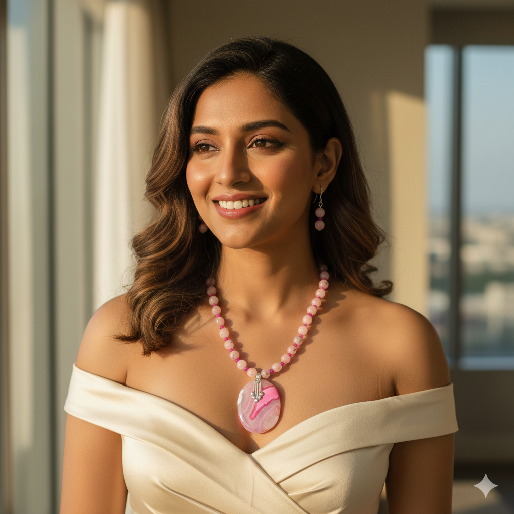 Handmade Big Size Agate Pendant Necklace With Beautiful Matching Earring Pair