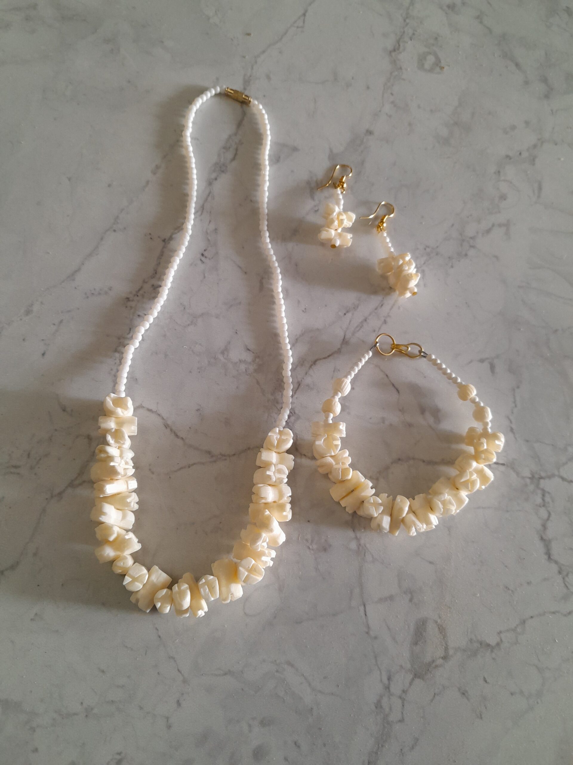 Beautiful Handmade camel Bone Carving Necklace and bracelet earing pair