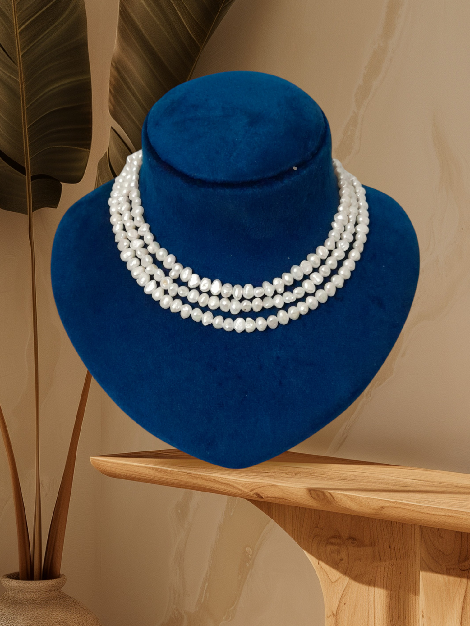 Beautiful Handmade Real Netural Fresh Water Three Layer Perl Necklace