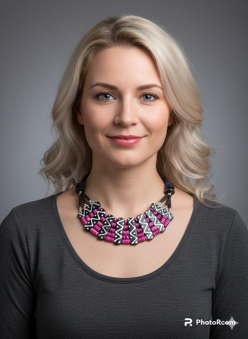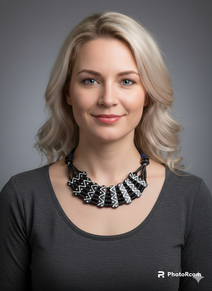 Beautiful Handmade Vintage Camel Bone Tie & Dye Necklace